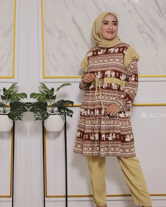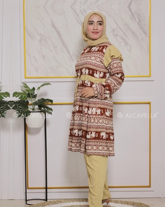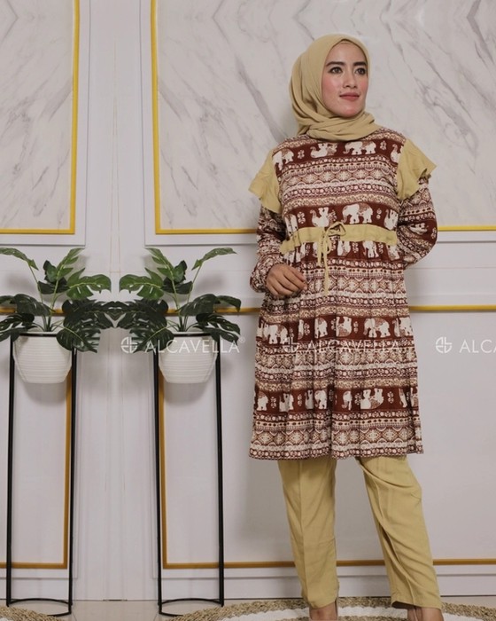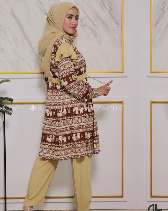 Alcavella daily wear Tunic dengan cuttingan design terbaru tekstur serat yang lembut dan nyaman, elegant dan tetap classy dengan aksen ruffle di bagian tangan, aksen tali kerut di bagian pinggang, membuat kamu terlihat lebih stylish.