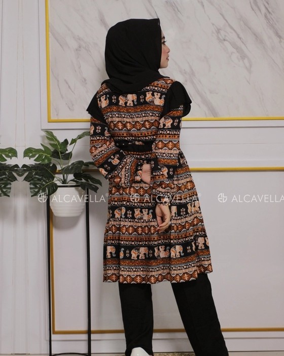 Alcavella daily wear Tunic dengan cuttingan design terbaru tekstur serat yang lembut dan nyaman, elegant dan tetap classy dengan aksen ruffle di bagian tangan, aksen tali kerut di bagian pinggang, membuat kamu terlihat lebih stylish.