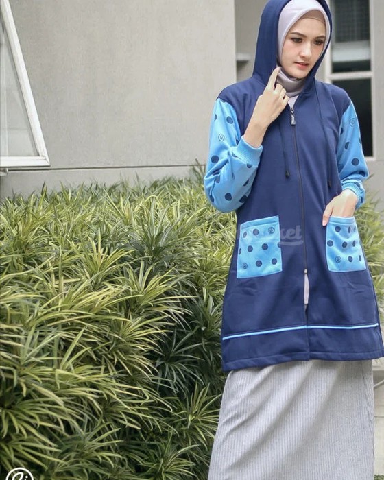 Hijacket Adeeva dirancang khusus untuk kamu para hijaber dan mengusung Motif polkadot di kedua saku dan lengannya, membuat kamu lebih terkesan menyenangkan dan tampil ceria.