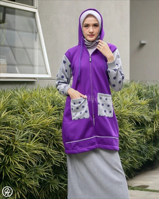 Hijacket Adeeva dirancang khusus untuk kamu para hijaber dan mengusung Motif polkadot di kedua saku dan lengannya, membuat kamu lebih terkesan menyenangkan dan tampil ceria.