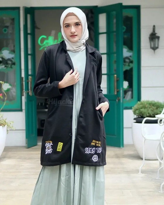 Hijacket Elma Original merupakan seri hijacket gaya modern yang tak lekang oleh waktu, hijacket elma dilengkapi dengan bentuk feminin, saku yang praktis dan pas serbaguna dan dengan tombol pearlescent vintage-chic. Sangat cocok untuk hijaber yang suka tampil formal dan berstyle jas.