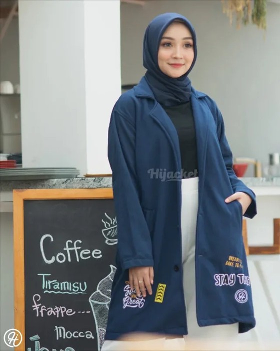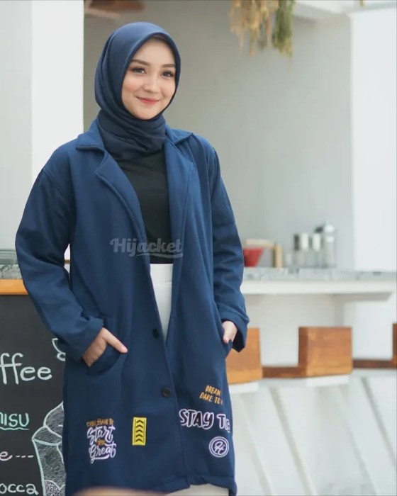 Hijacket Elma Original merupakan seri hijacket gaya modern yang tak lekang oleh waktu, hijacket elma dilengkapi dengan bentuk feminin, saku yang praktis dan pas serbaguna dan dengan tombol pearlescent vintage-chic. Sangat cocok untuk hijaber yang suka tampil formal dan berstyle jas.