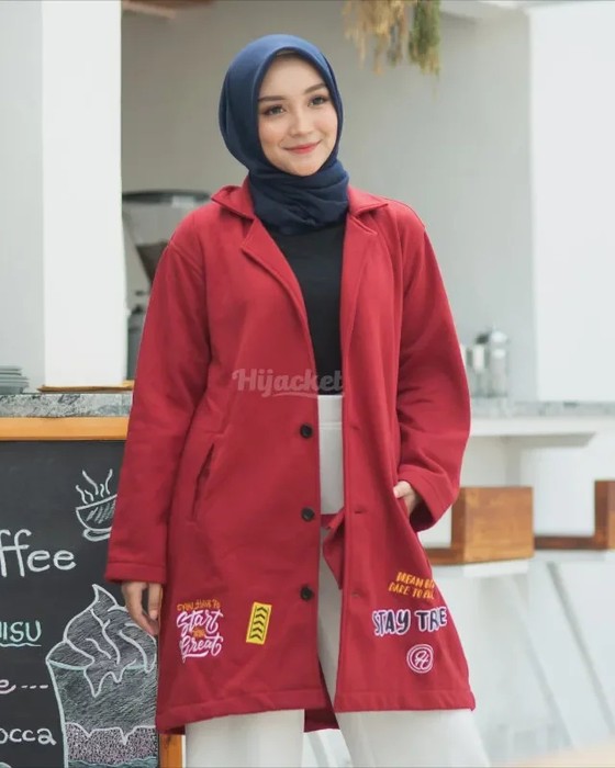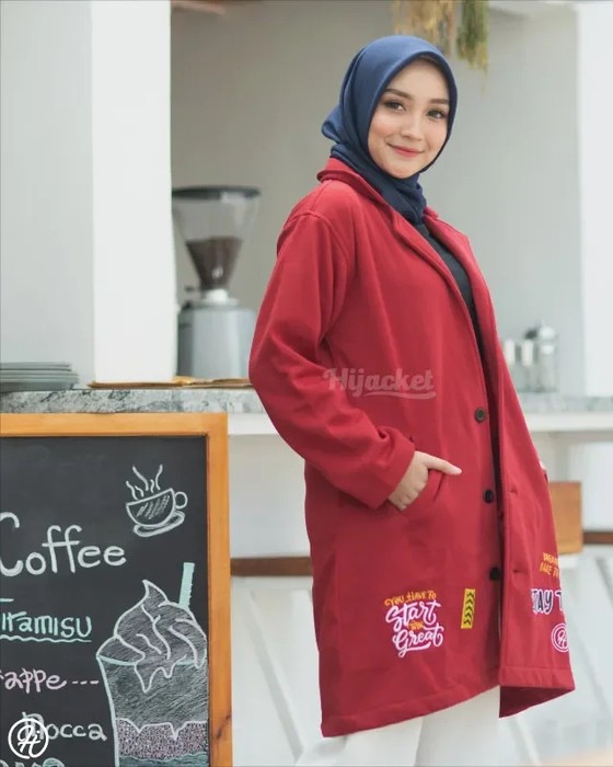 Hijacket Elma Original merupakan seri hijacket gaya modern yang tak lekang oleh waktu, hijacket elma dilengkapi dengan bentuk feminin, saku yang praktis dan pas serbaguna dan dengan tombol pearlescent vintage-chic. Sangat cocok untuk hijaber yang suka tampil formal dan berstyle jas.