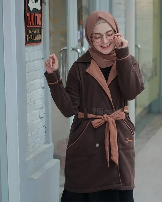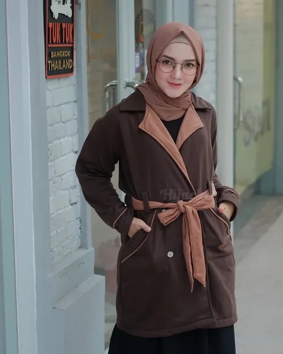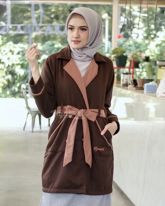 Hijacket Elnara Original ini didesain dengan gaya modern, stylish dan modist. Dengan sentuhan tali di pinggang dengan kedua saku menyamping menjadikannya kamu tampil glamour.