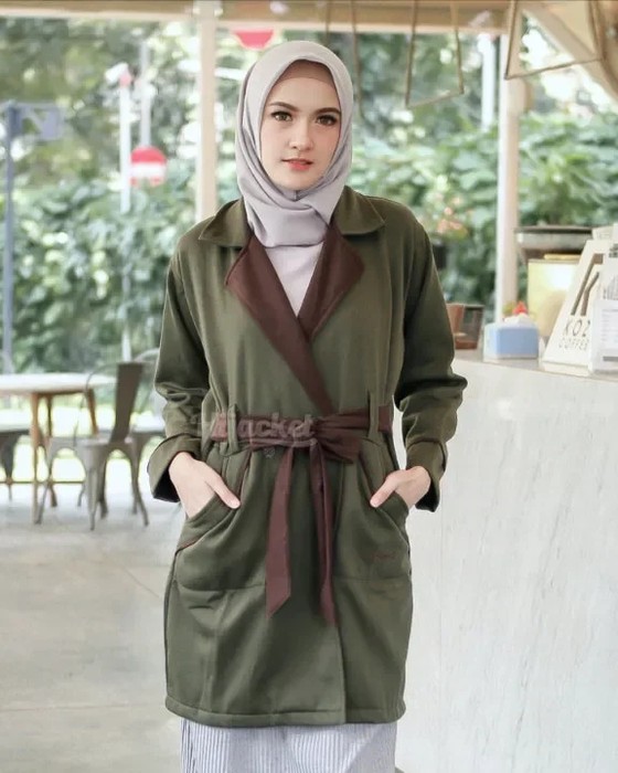 Hijacket Elnara Original ini didesain dengan gaya modern, stylish dan modist. Dengan sentuhan tali di pinggang dengan kedua saku menyamping menjadikannya kamu tampil glamour.