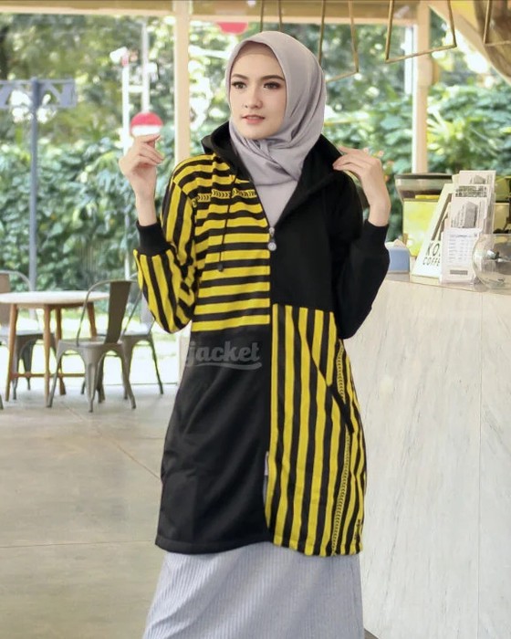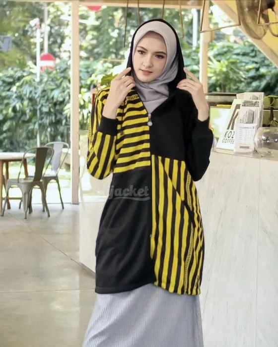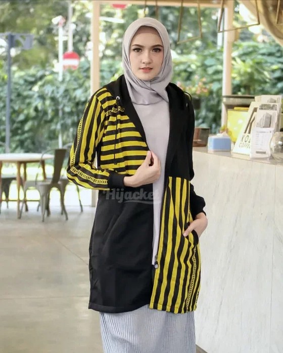 Hijacket Ghania Original menyuguhkan motif yang sangat elegan, dengan perpaduan motif horizontal dan motif vertical membuat pemakainya terlihat dinamis untuk kegiatan sehari-hari