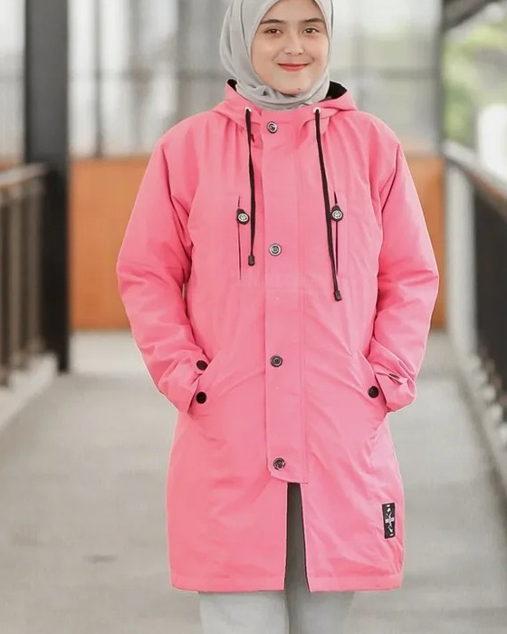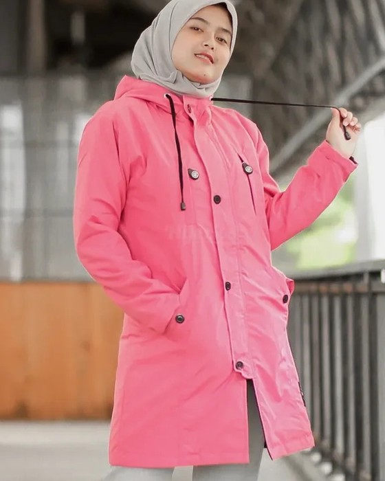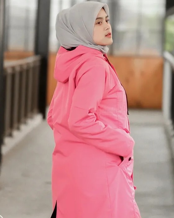 Hijacket Ixora Series, adventuring-inspired layer for Hijaber with a pastel color-blocked design on lightweight fabric for an iconic look 100% Polyfiber Imported, 75% Waterproof & Windproof, Full Dourmill Dacron, Pocket Inside.