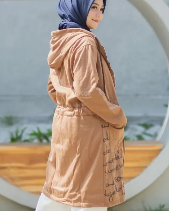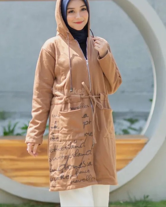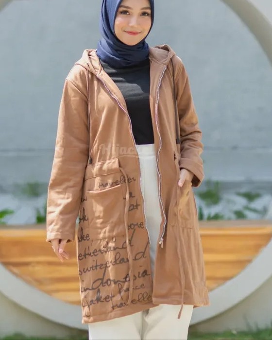 Hijacket Urbanashion Original model Hijacket ini didesain khas bergaya urban yang berkesan elegan bikin penampilan Anda tambah berwibawa. Cocok untuk wanita karir atau muslimah profesional. Dengan model modis, dipadu tulisan beberapa nama negara, kantong, dan tali kerut agar lebih stylish.