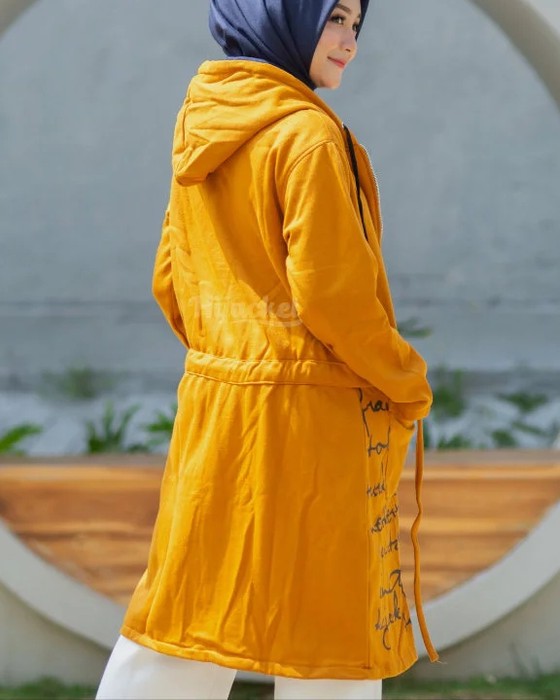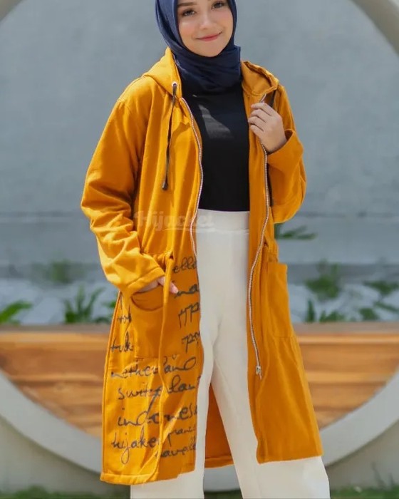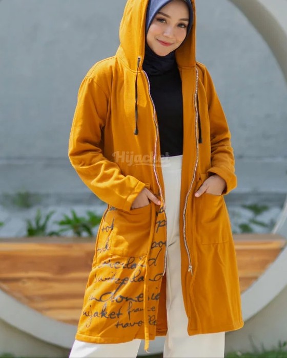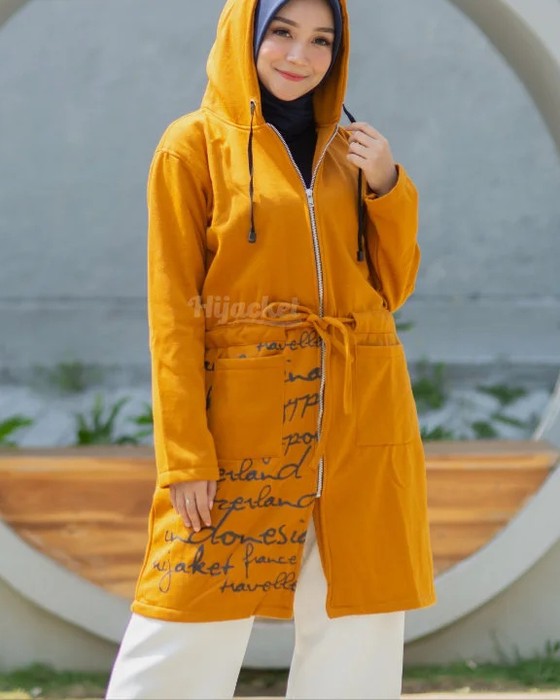 Hijacket Urbanashion Original model Hijacket ini didesain khas bergaya urban yang berkesan elegan bikin penampilan Anda tambah berwibawa. Cocok untuk wanita karir atau muslimah profesional. Dengan model modis, dipadu tulisan beberapa nama negara, kantong, dan tali kerut agar lebih stylish.