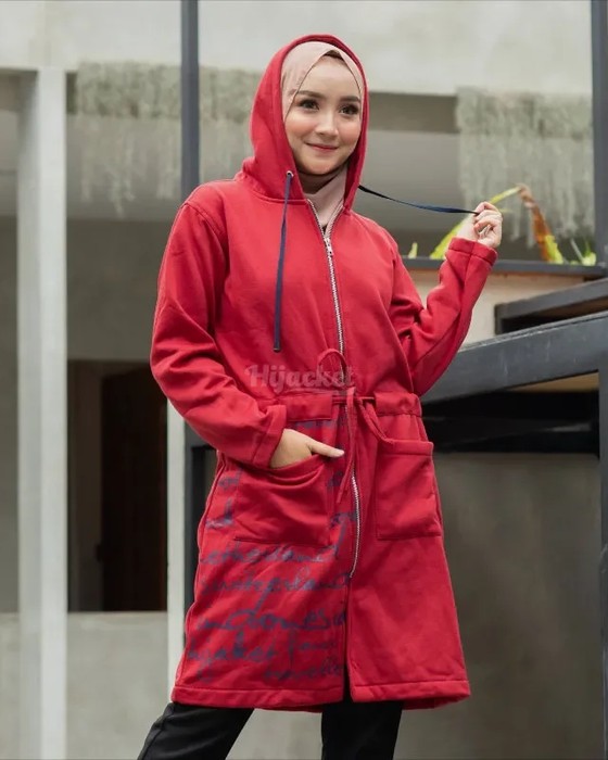 Hijacket Urbanashion Original model Hijacket ini didesain khas bergaya urban yang berkesan elegan bikin penampilan Anda tambah berwibawa. Cocok untuk wanita karir atau muslimah profesional. Dengan model modis, dipadu tulisan beberapa nama negara, kantong, dan tali kerut agar lebih stylish.