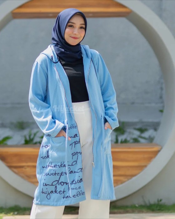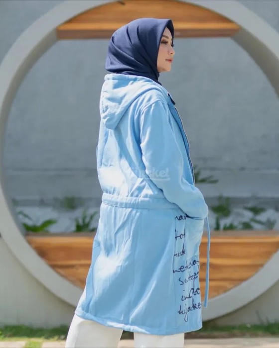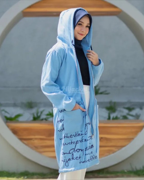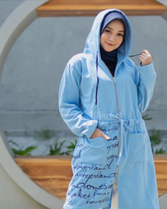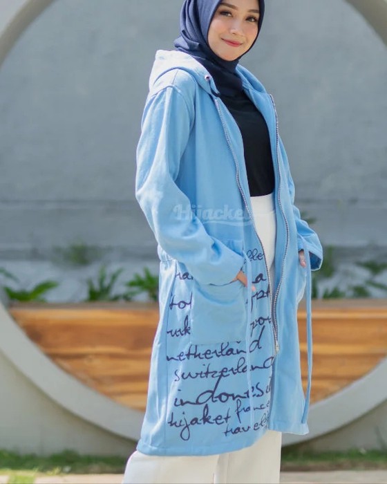 Hijacket Urbanashion Original model Hijacket ini didesain khas bergaya urban yang berkesan elegan bikin penampilan Anda tambah berwibawa. Cocok untuk wanita karir atau muslimah profesional. Dengan model modis, dipadu tulisan beberapa nama negara, kantong, dan tali kerut agar lebih stylish.