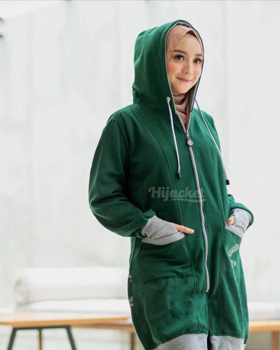 Hijacket Yukata Original seri hijacket terbaru dengan tema Sporty model Japan dengan style Finger dipadu dengan sablon Hijaber berkualitas dibagian saku depan menjadikan hijacket yukata ini merupakan identitas dan jati diri seorang hijaber sejati disempurnakan dengan perpaduan warna elegan dengan bahan premium fleece yang tebal, nyaman dan adem.